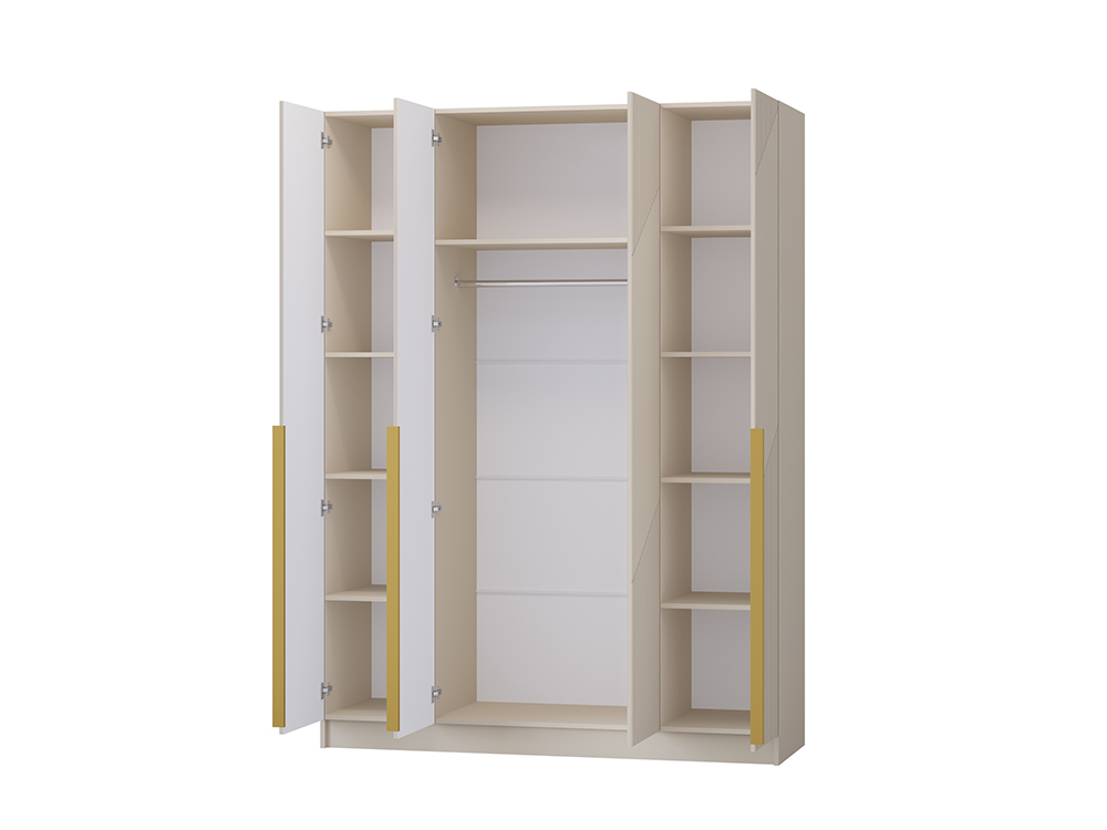 Зеркало Размер зеркала Внутреннее 1385х275 (1 шт.) продается отдельно Материал Материал корпуса ЛДСП Материал фасадов МДФ Тип петель Петли Накладные с доводчиком * Фасад и корпус шкафа доступны для заказа по отдельности. Вы можете самостоятельно подобрать цветовую гамму фасада и корпуса, создав уникальный дизайн шкафа. Дополнительно предоставляется возможность выбрать фурнитуру: ручки предлагаются в двух элегантных вариантах отделки — чёрном или золотом исполнении(ручки покупаются отдельно).* Комплект зеркал покупается отдельно. Наклейка зеркал осуществляется самостоятельно согласно схеме сборки