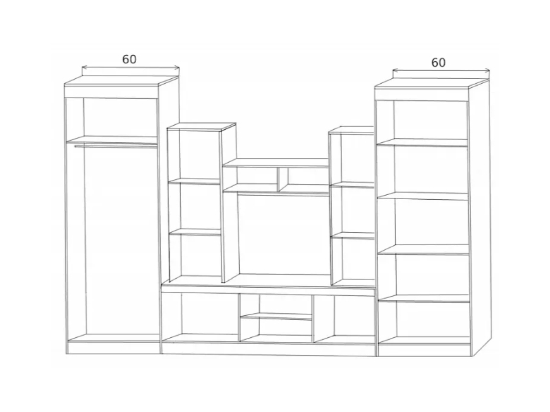 Красивая гостиная для стильного интерьера и практичного выбора. Настоящее украшение модели – центральные шкафы-витрины с нанесенным на стекло фантазийным рисунком.