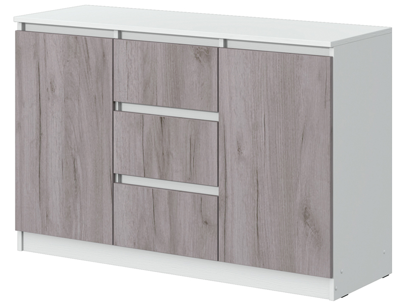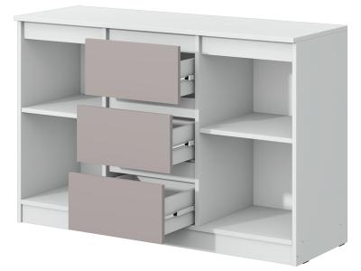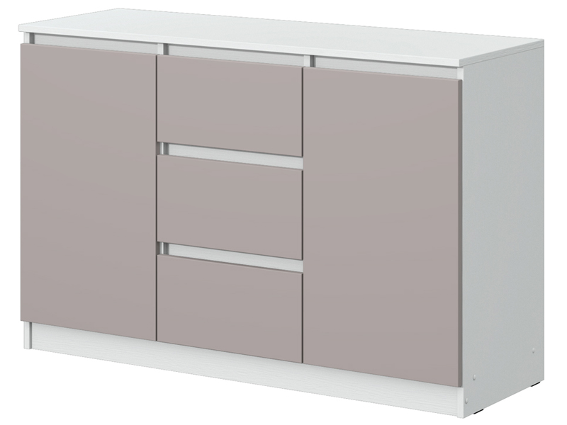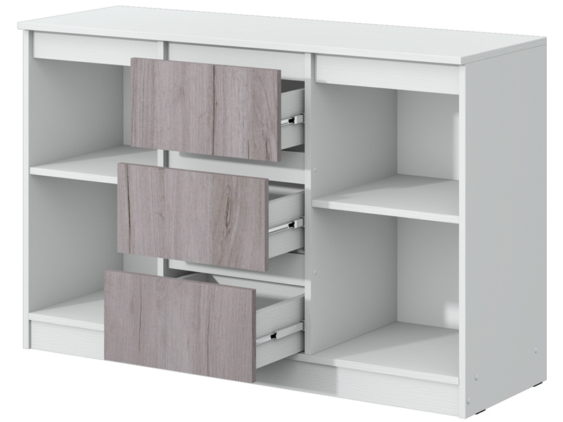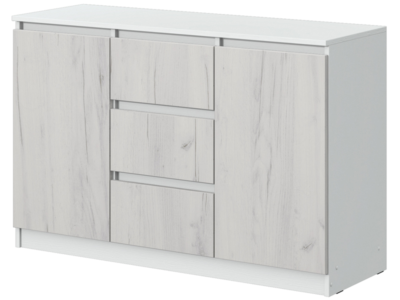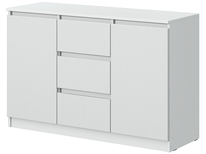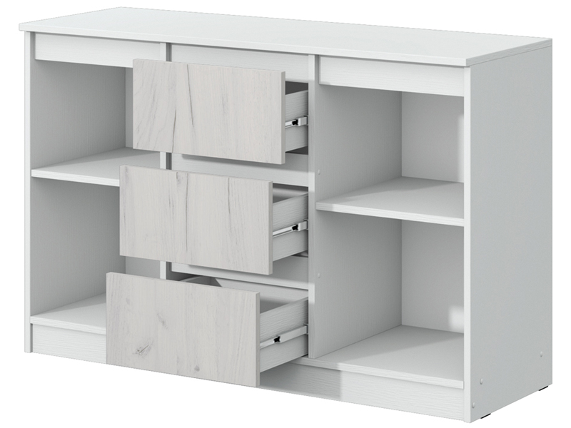 - Комбинированный комод: по центру 3 ящика и по бокам 2 распашные створки с полкой внутри отделения.