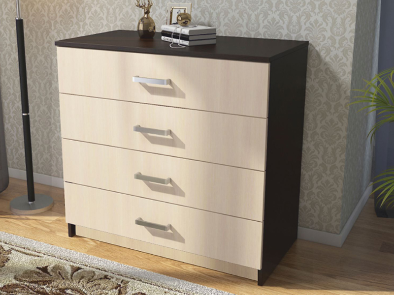 ЭВА Комод КМ-021 (Д.850 х В.820 х Г.445 мм) состоит из корпуса и фасада. Корпус и фасад изготавливаются из ЛДСП 16мм и закромлены кромкой ПВХ толщиной 0,4 мм. Задняя стенка и дно ящиков выполнены из ДВП простого толщиной 3,2мм. Комод имеет цокольную систему. В качестве опор используются подпятники черного цвета. Фасад ящика с обратной стороны имеет пропил под дно ящика. Направляющие роликовые (цвет белый). Максимально допустимая нагрузка на направляющие – до 8 кг при условии равномерно распределенной нагрузки. Высота боковины ящика 106 мм, глубина 400 мм, ширина 790 мм. Максимальная высота под хранение 166 мм. Ручка пластиковая (128 мм).