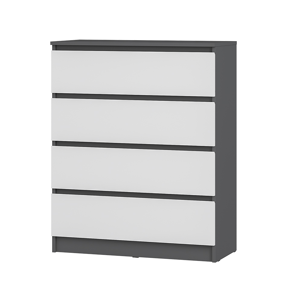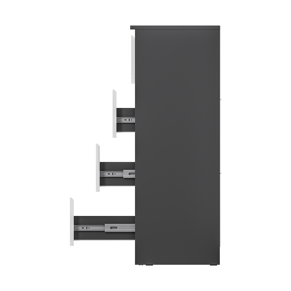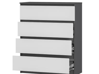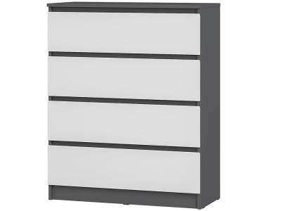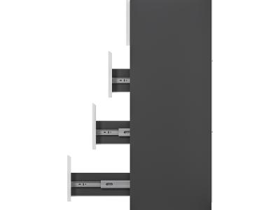 Коллекция "Шарм" - современная классика в контрастном исполнении "белый/графит". Комод воплощает чистый минимализм: гладкие фасады (без фурнитуры) и плавные шариковые направлящие.