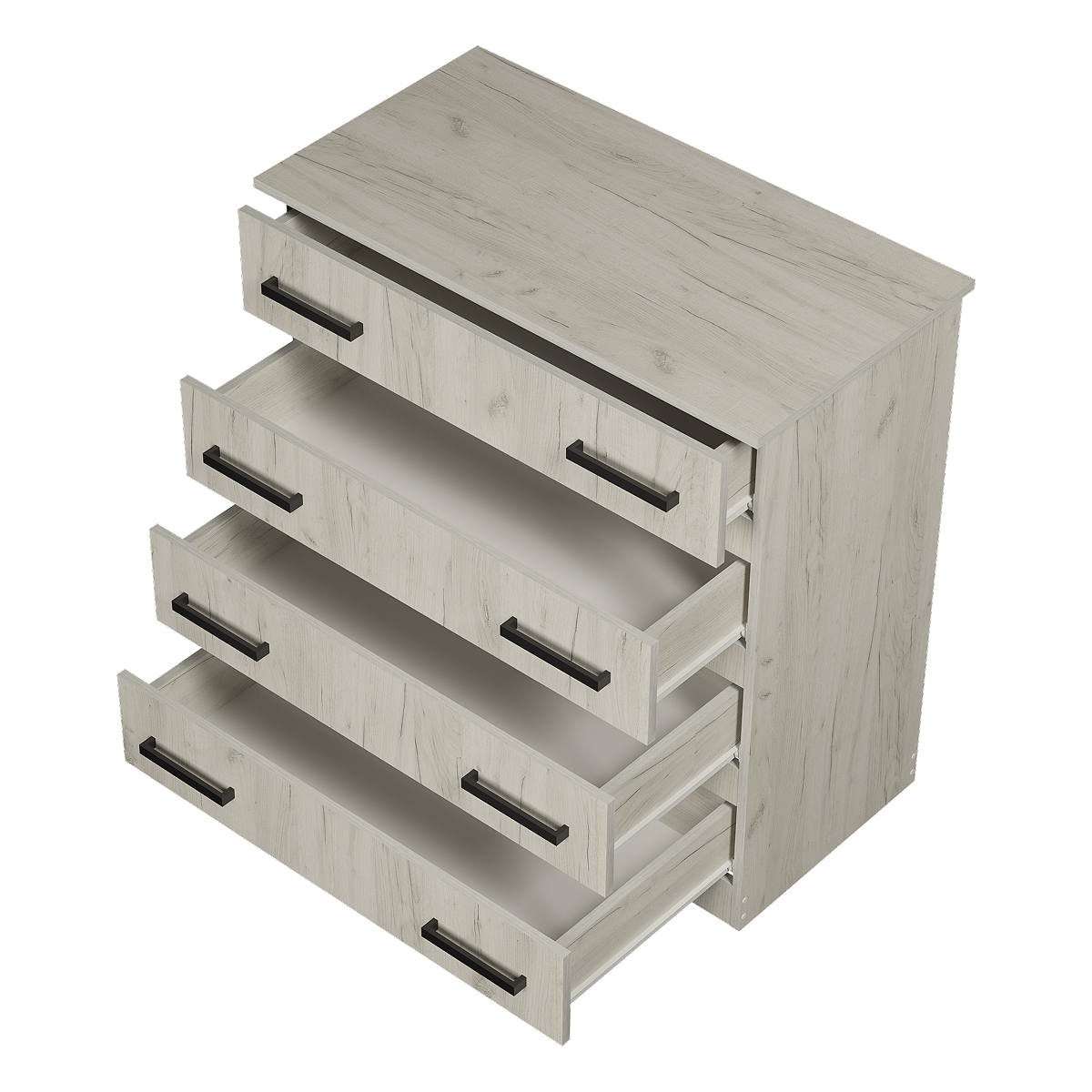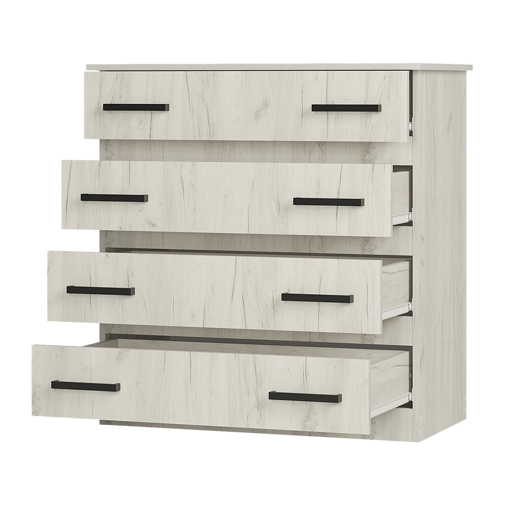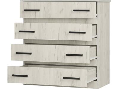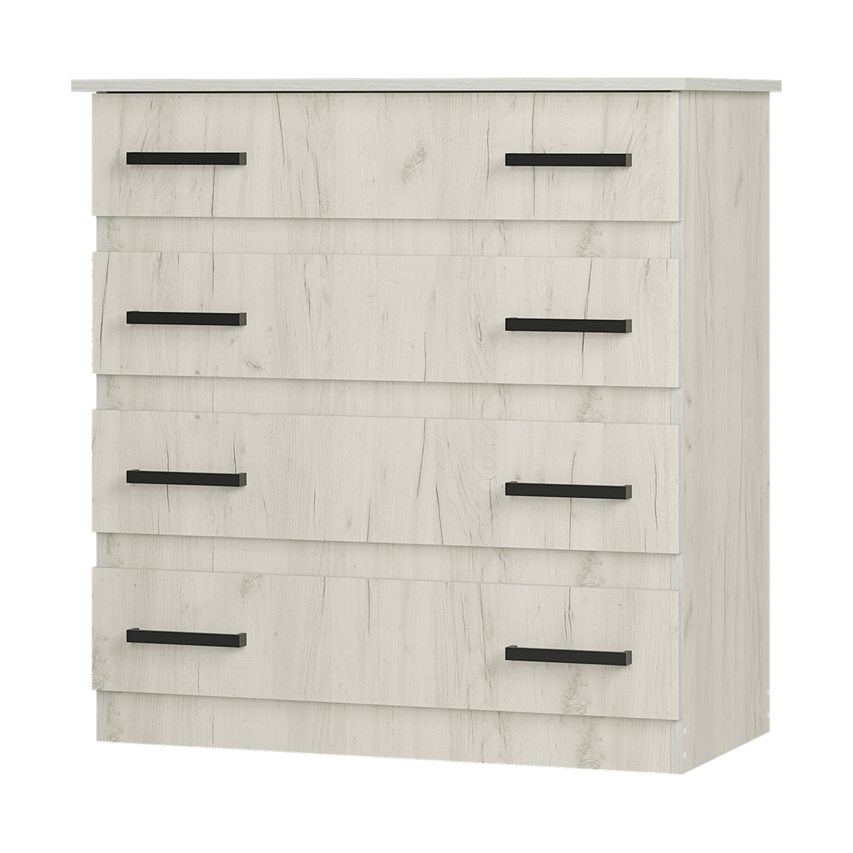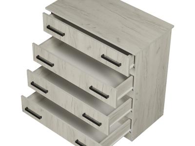 Классическая модель комода «Стандарт № 6» выполнена из ЛДСП высокого качества. Комод состоит из четырех выдвижных ящиков, на каждом из которых расположены две ручки.