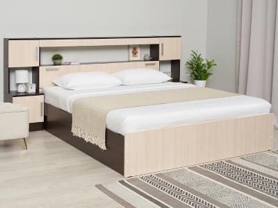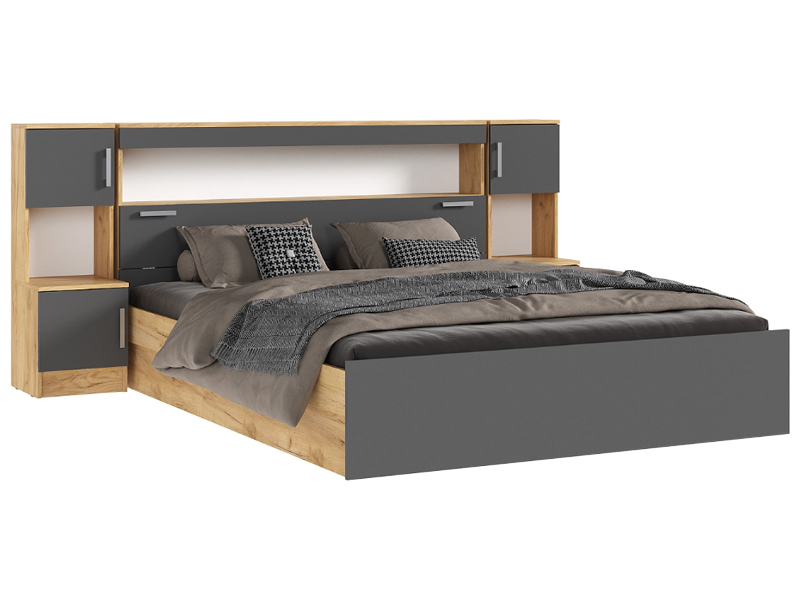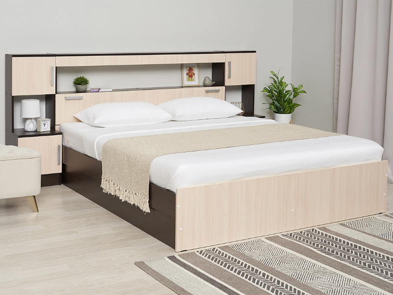 Кровать 1,6 м с надстройкой с тумбами к модульной спальне "Бася"