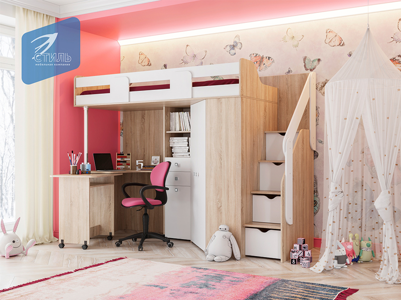 Современный стиль, экологичные материалы, надежная и безопасная конструкция, эргономичное решение для небольшой детской.