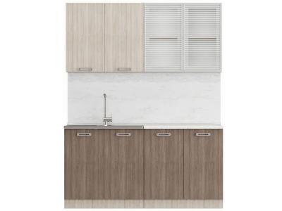Кухня Катя — это гарнитур эконом класса, изготовленный из ЛДСП в теплых древесных декорах Ясень светлый/ясень темный.