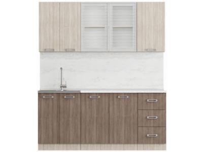 1.8метра (стол 60см под мойку/шкаф 60см + 80см стол/ шкаф 80см стекло + 40см с ящиками/шкаф 40см)