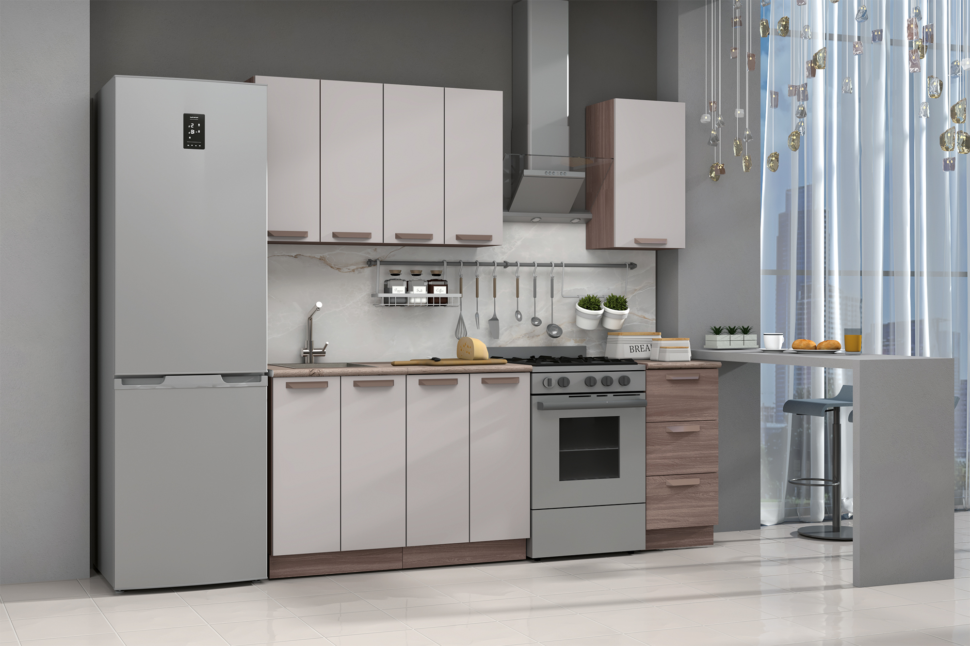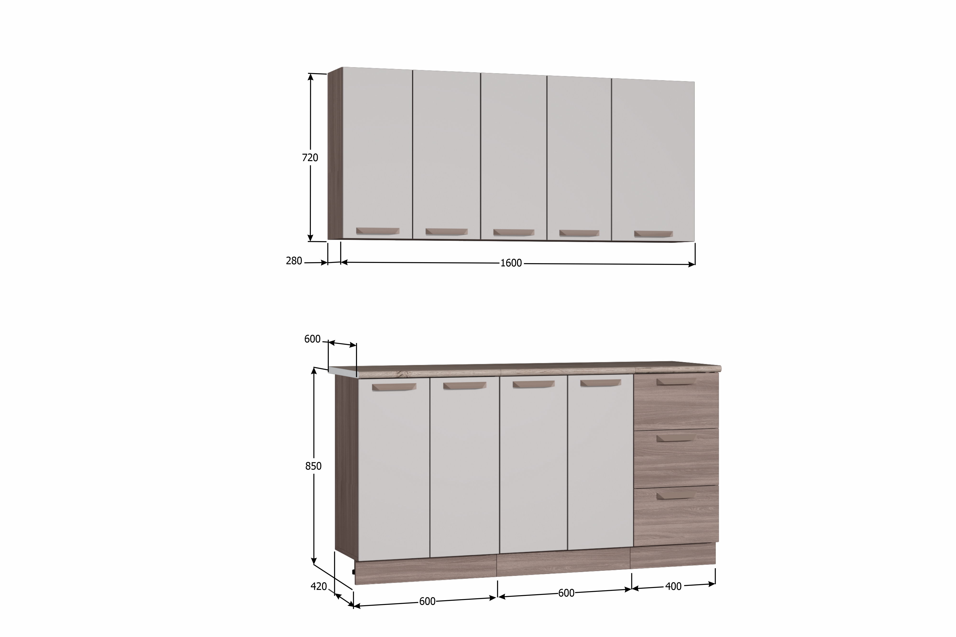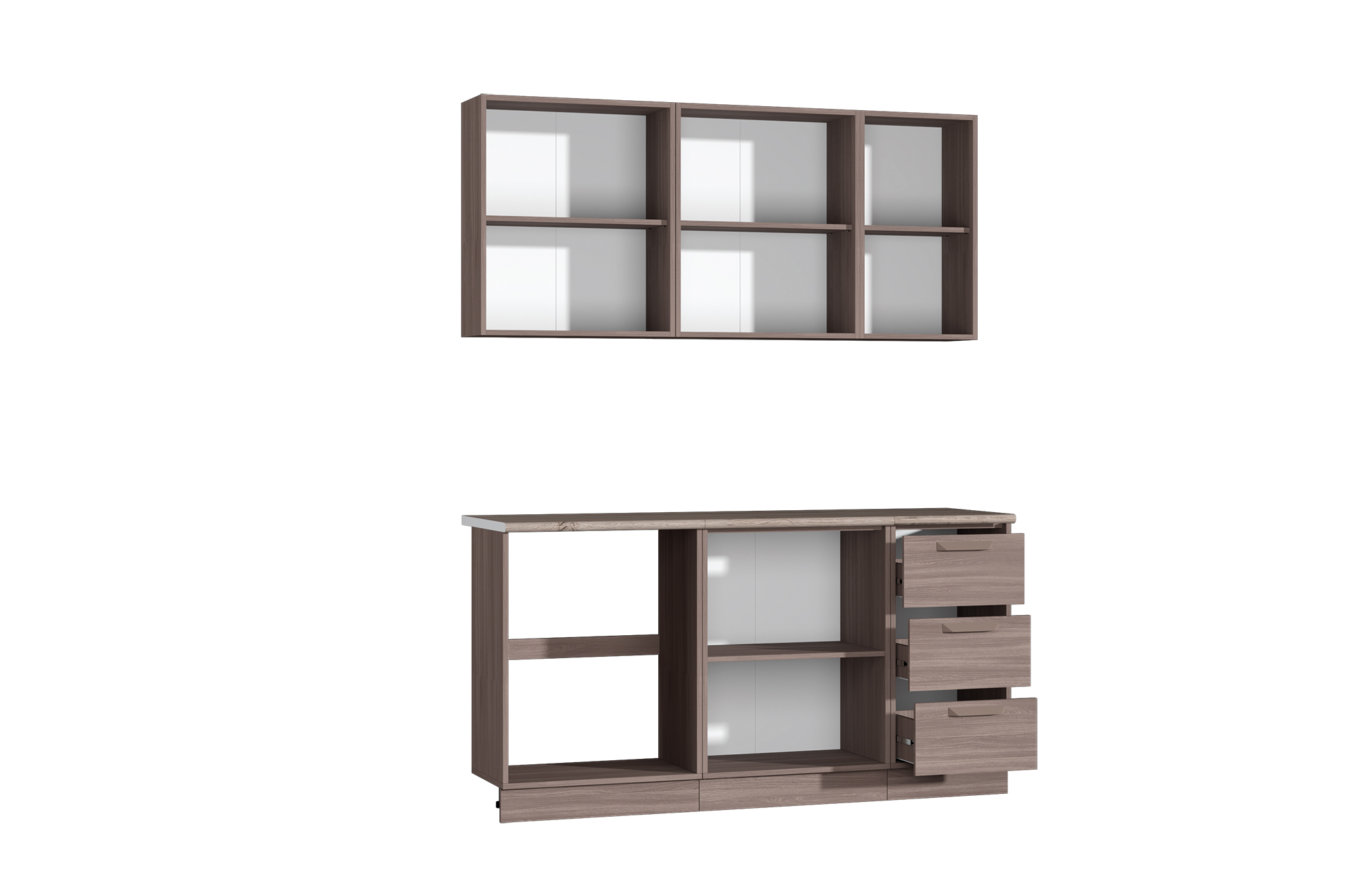 Особенности гарнитура: Цвет корпуса: Шимо темный Цвет фасада: Шимо темный/Кашемир, столешница - дуб кера