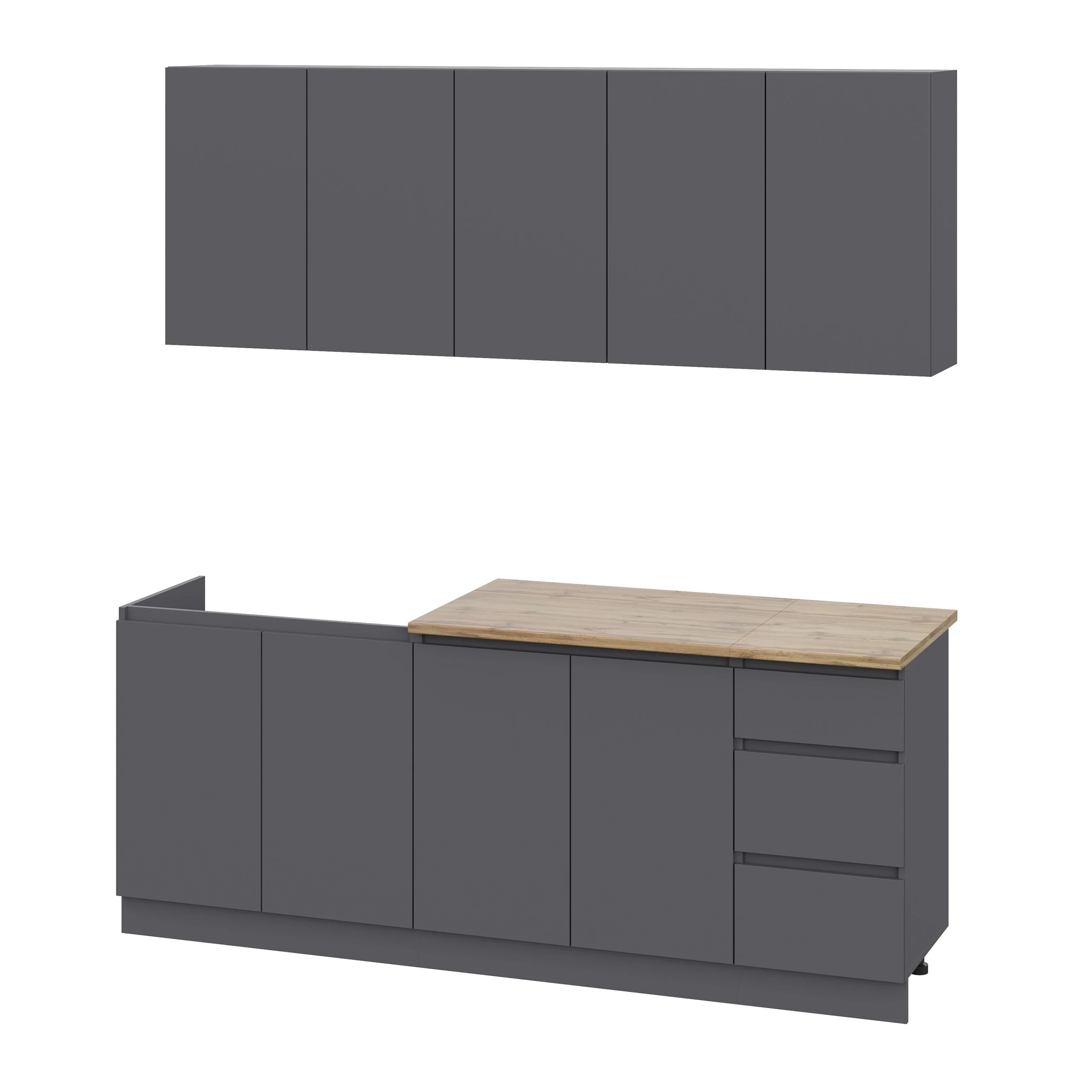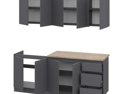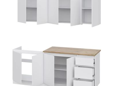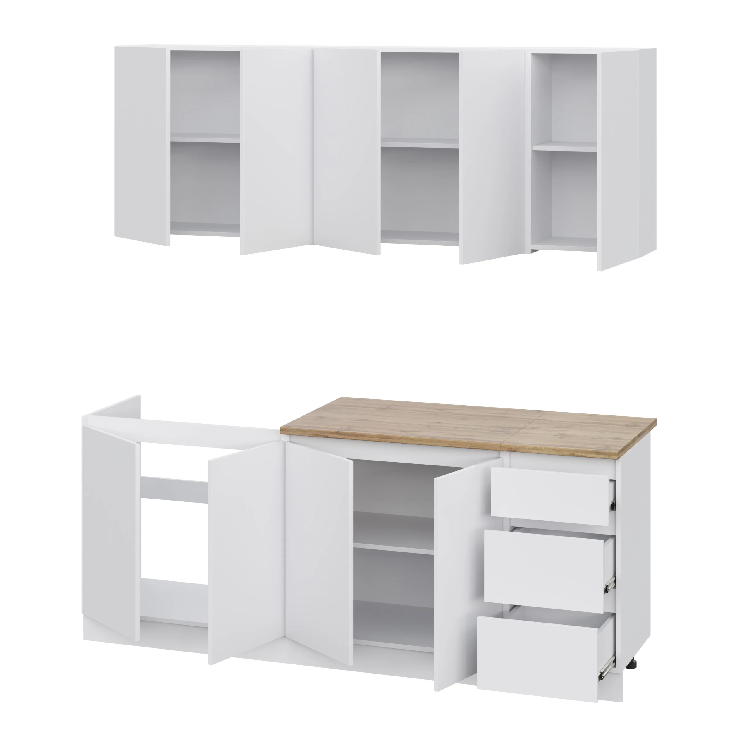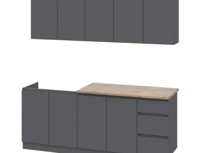 Прямой кухонный гарнитур с фасадамит без ручек выполнен из прочного ЛДСП в современном стиле.