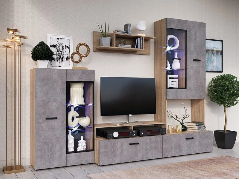 Модульная гостиная "Нэнси" New ЛДСП (Бетон светлый/сонома(белый))