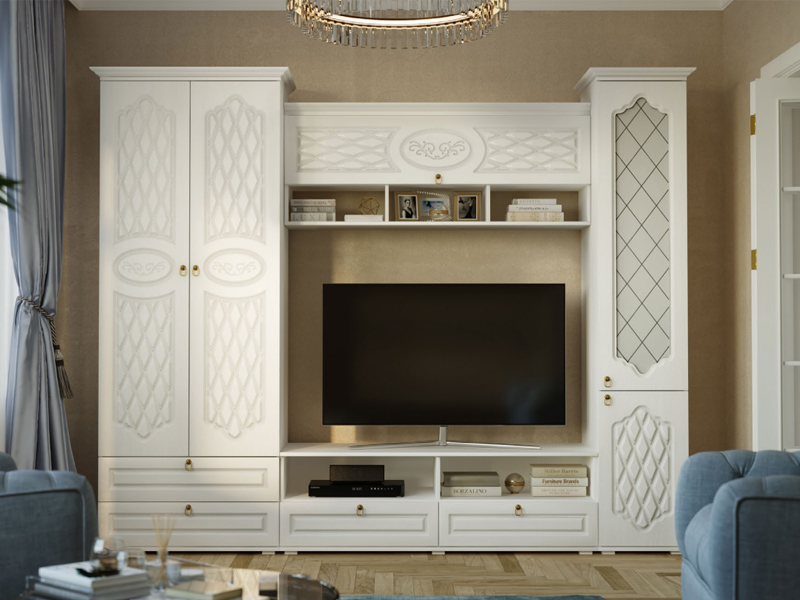 Гостиная из мдф "Престиж" - это идеальное решение для тех, кто ценит красоту, функциональность и элегантный интерьер. Гармоничное цветовое решение, красивая отделка фасадов для гостиной и аристократизм мебели подчеркнут высокий социальный статус и безупречный вкус хозяев. С гостиной "Престиж" приятно принимать гостей и проводить время с семьей. Гостиная просто очаровывает своим роскошным видом и необыкновенной отделкой.