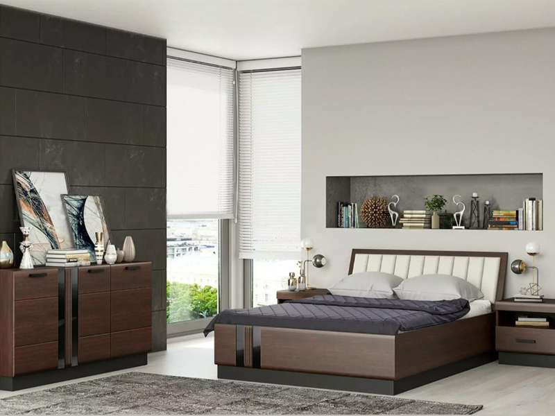 Спальня "Магнолия" выполнена в цвете "Белый глянец" и "Дерево/Орех, что делает утончённой, стильной и современной. Данный спальный гарнитур идеально сочетается практически с любым стилевым направлением.