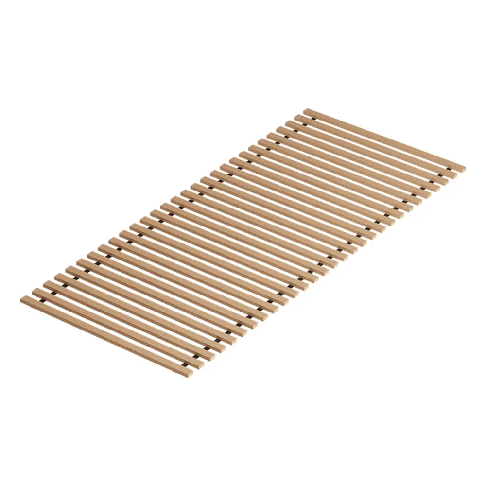 Настил реечный – это рейки, скреплённые между собой лентой, сделаны из прочной берёзовой фанеры толщиной 12 мм. Благодаря своей конструкции давление равномерно распределяется по всей площади спального места, обеспечивая качественную вентиляцию матраса со всех сторон, что гарантированно продлит его ортопедические характеристики и срок эксплуатации. Максимальная нагрузка на спальное место - 120 кг.