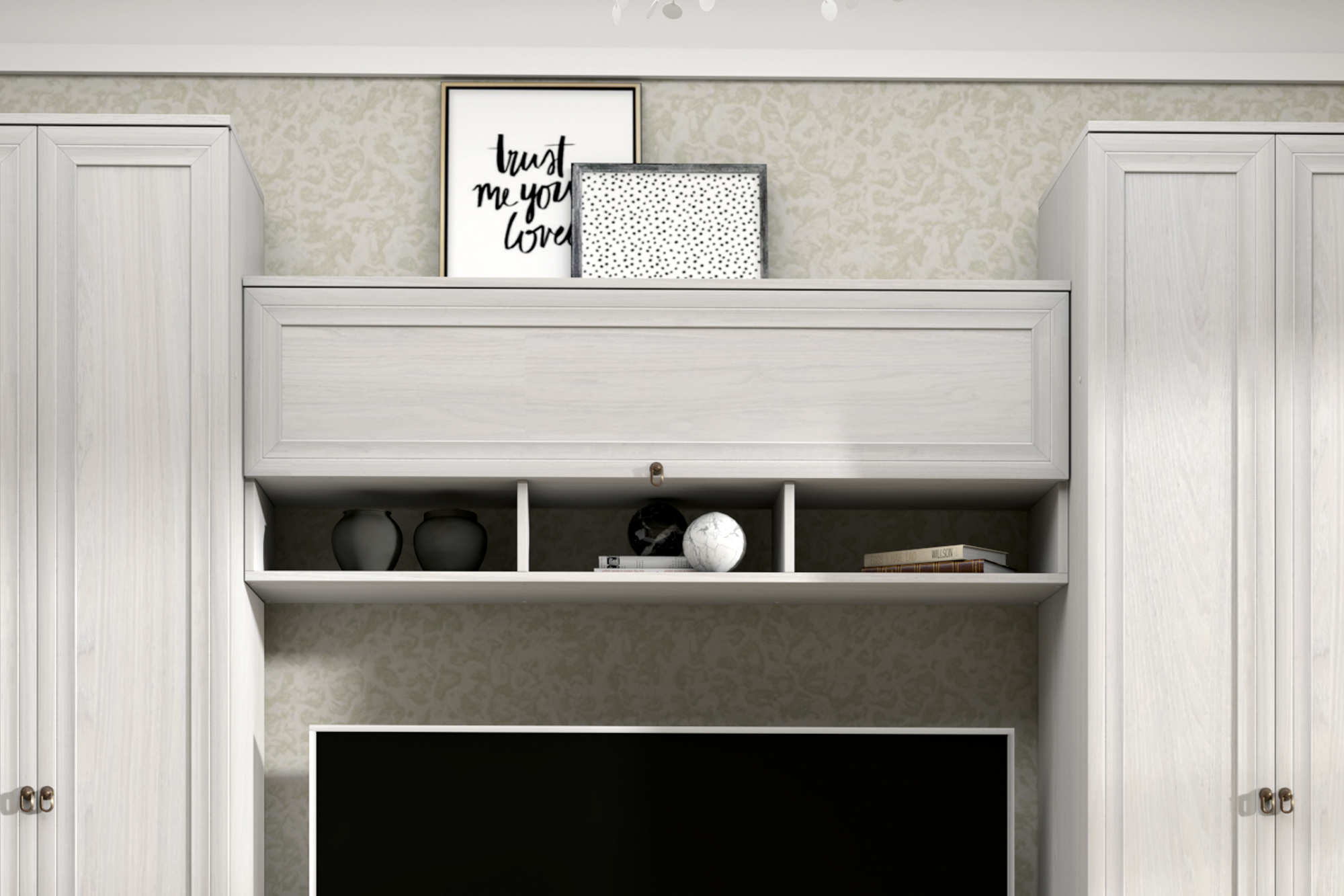 - Полка навесная является одним из элементов модульной системы "Алисия", рекомендуется комплектовать с пеналами, шкафами и тумбой ТВ данной серии.