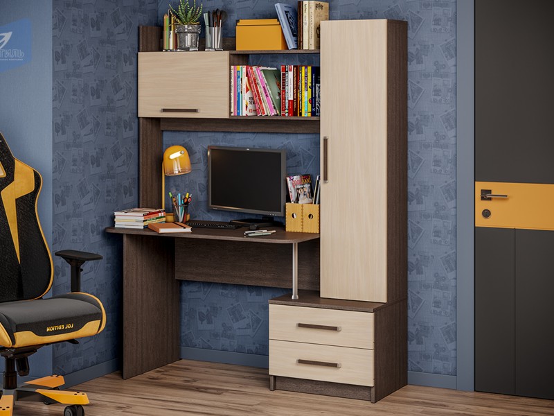 Размер под монитор – 1083 х 556 мм. Уголок состоит из рабочего стола размером Д.1100 х В.760 х Г.586 мм., закрытого пенала размером Д.350 х В.1356 х Г.285 мм. , в котором удобно хранить документы и книги. Есть тумба размером Д.548 х В.442 х Г.480 мм. с двумя выдвижными ящиками на роликовых направляющих, благодаря чему процесс открывания ящиков будет проходить без лишних усилий. Дополнительным местом для хранения мелочей является верхняя закрытая полка, а рядом с ней на открытой полке можно расположить выставку достижений школьника. Во избежание нанесения травм, углы стола имеют скруглённые формы, поэтому он безопасен не только для подростков но и юным пользователям. Данная модель имеет возможность собираться как на левую, так и на правую сторону.