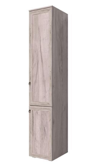 Ширина (мм): 400 Глубина (мм): 475 Высота (мм): 2150 Материал корпуса: ЛДСП Материал фасада: ЛДСП, багет Кромка: ПВХ 0,4 мм Опора: ОСК-20К Тип петли: накладная Материал ручек: металл Ручки: "Кольцо" в бронзовом цвете