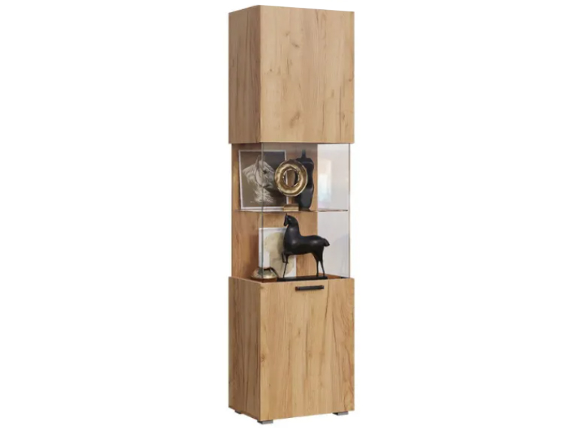 Пенал стекло к модульной гостиной "Алтея" ЛДСП (Дуб крафт/Бежевый)