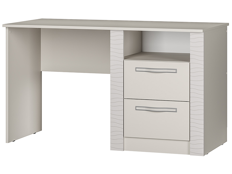 Стильный письменный стол "Монако" станет любимым местом для работы или учебы. Модель выполнена из высококачественной ЛДСП в цвете "кашемир". Фасады встроенной тумбы имеют отделку из МДФ. Помимо вместительной столешницы, в столе есть два выдвижных ящика и открытая ниша для хранения всех необходимых вещей.