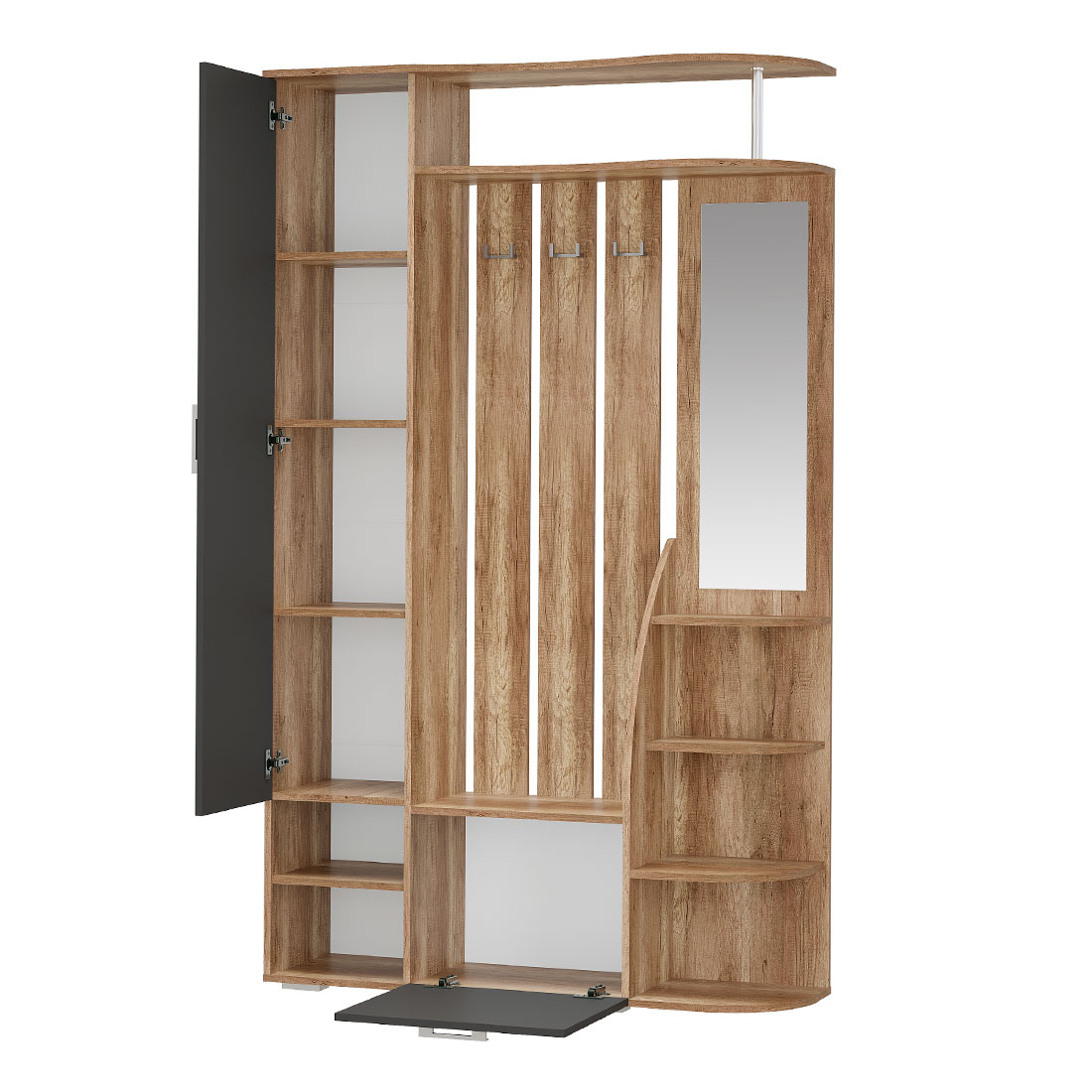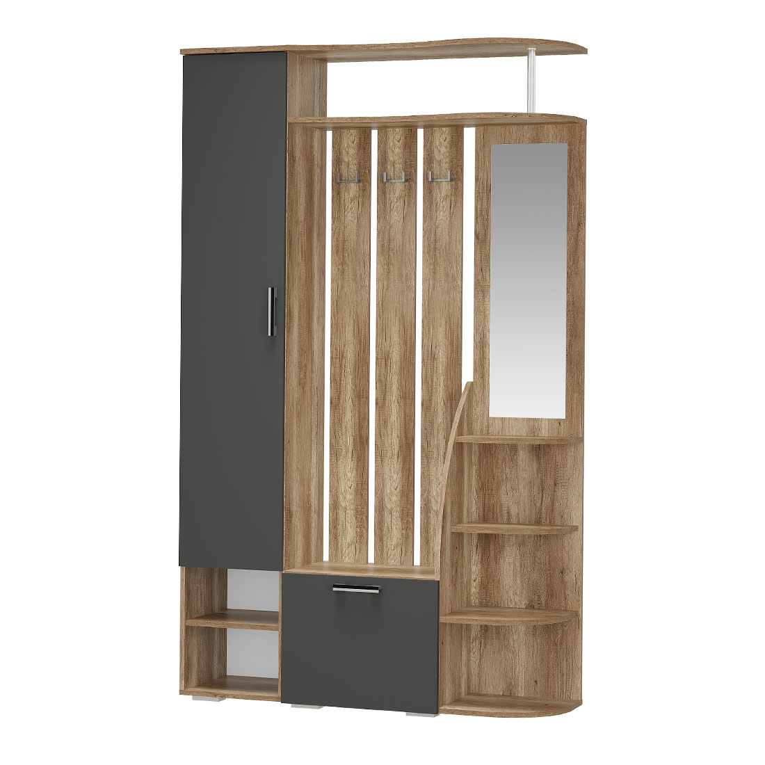 Гарнитур мебели для прихожей «Агата» — это практичное современное решение для вашего дома. Модель выполнена в стильных цветах «дуб каньон» и «графит», которые хорошо дополнят как яркое помещение, так и интерьер с преобладанием натуральных оттенков.