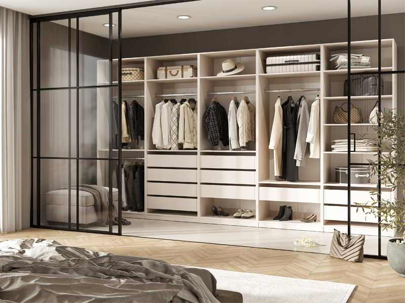 Ларго — это полноценная сборная система гардеробной. Уникальность данной гардеробной в том, что ее можно собрать в десятки различных комбинаций. Все элементы заказываются и набираются отдельно шкафы-каркасы, полки, ящики, фасады.