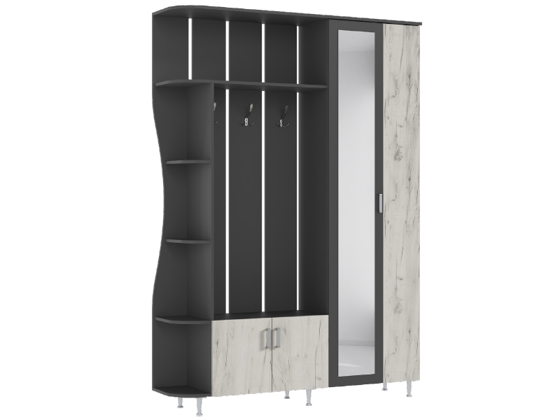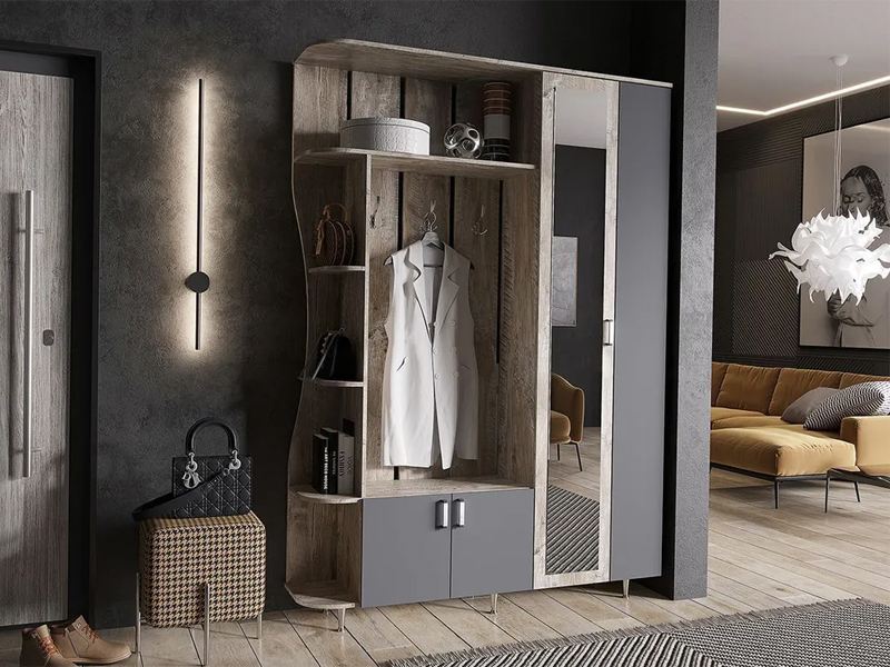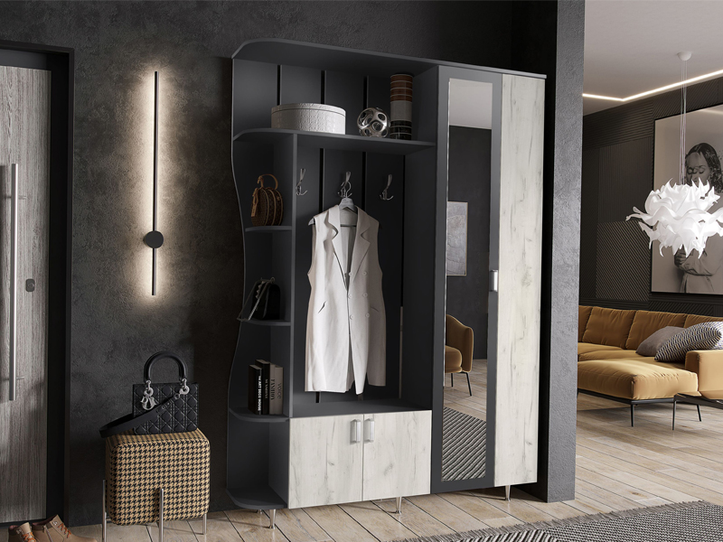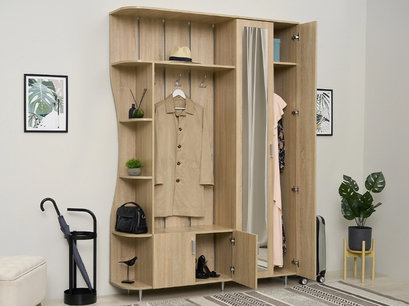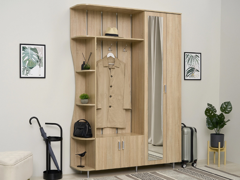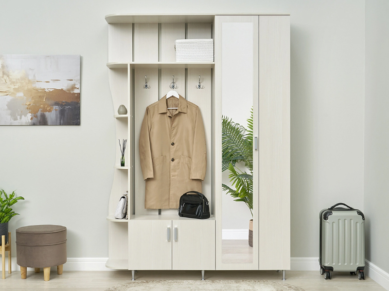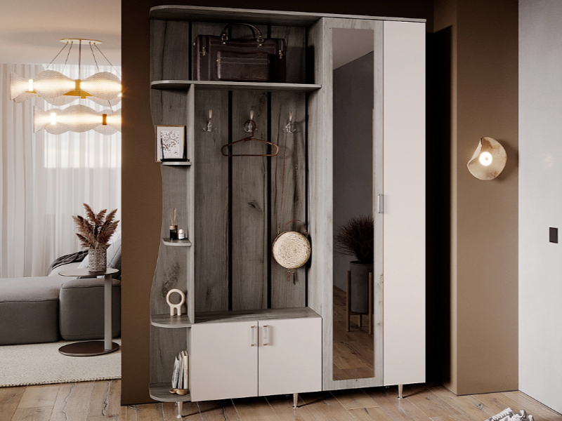 Функциональная мебель для малогабаритных квартир. Имеет компактные размеры и приятный дизайн. Зеркальная створка зрительно сделает шире узкую прихожую.