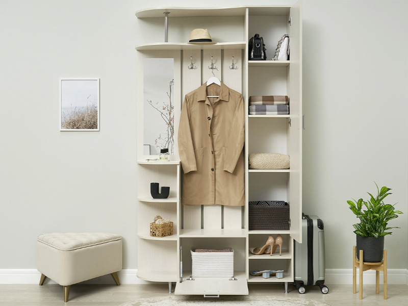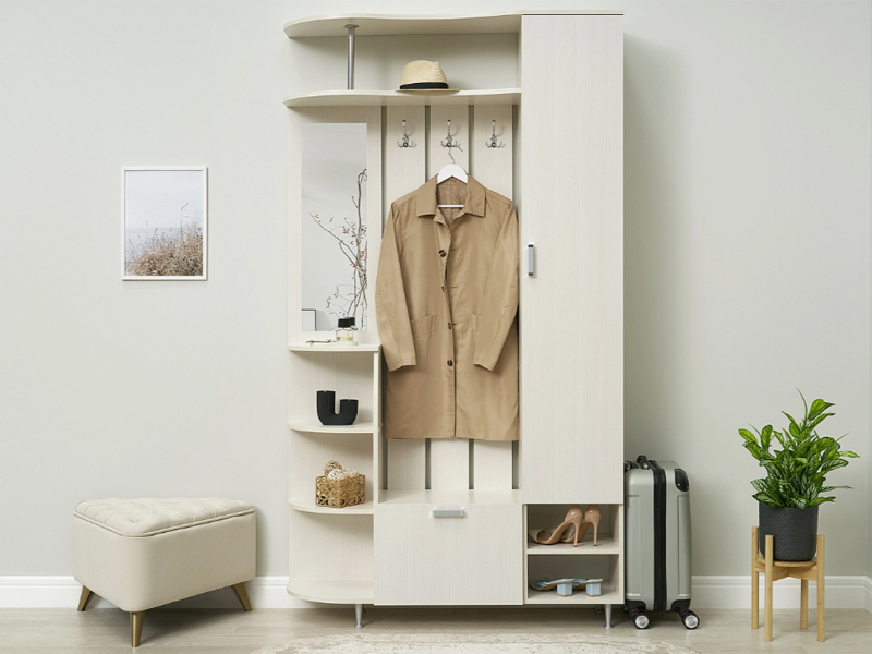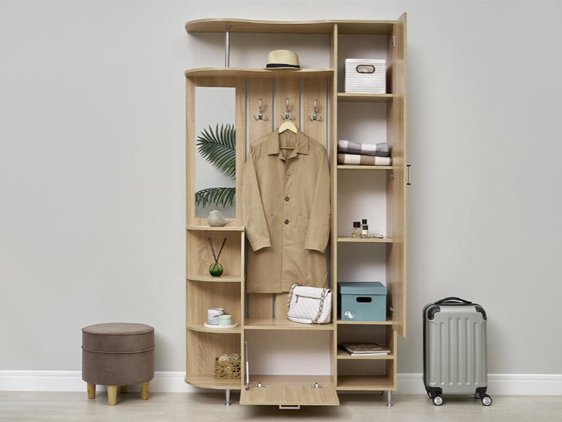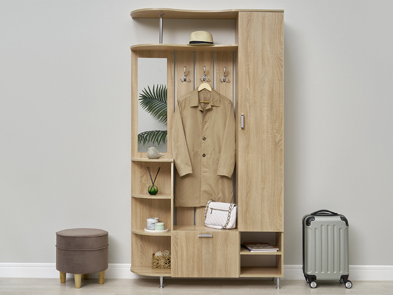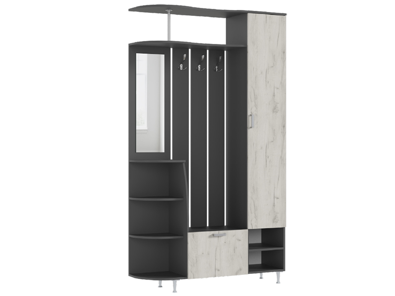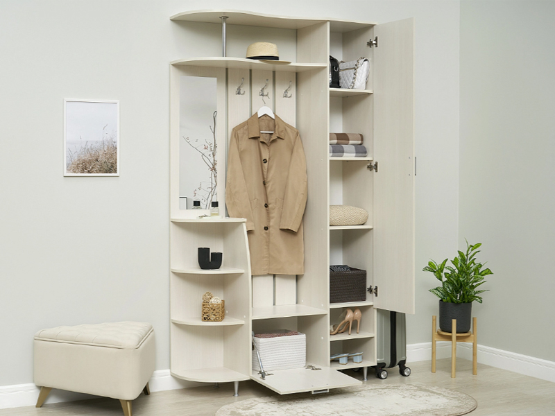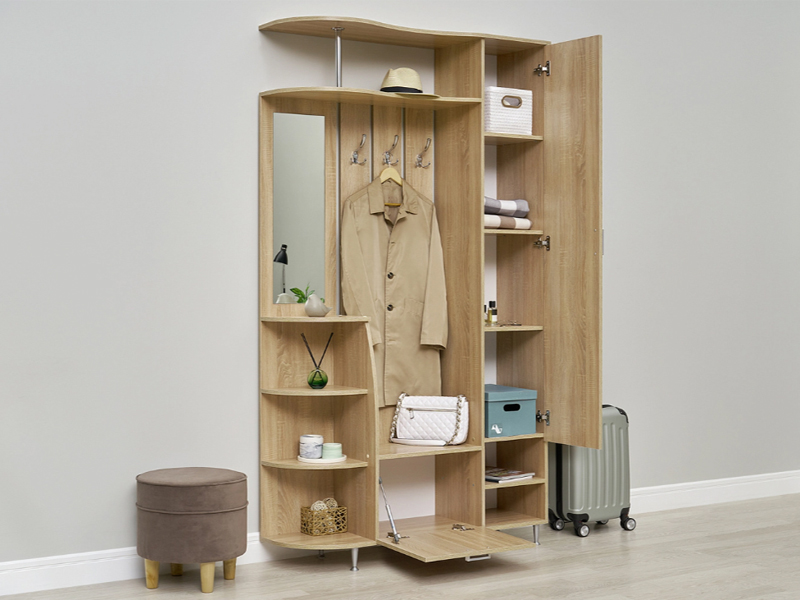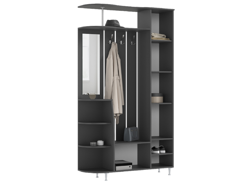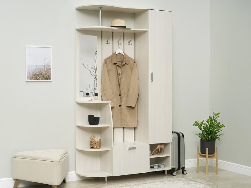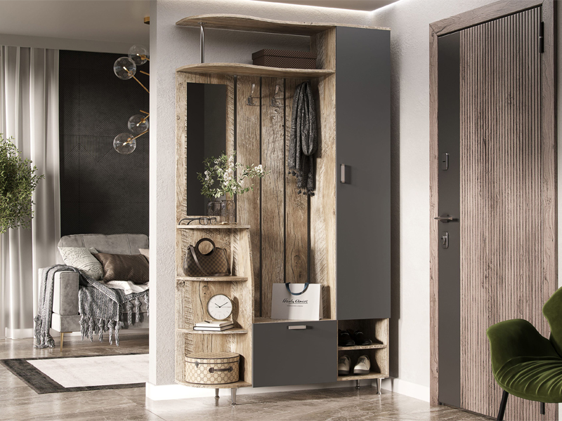 Отличается малыми габаритами, но достаточной шириной для того, чтобы вместить в себя минимум необходимых секций. Поможет правильно организовать пространство прихожей и эффектно оформить малую по площади входную зону.