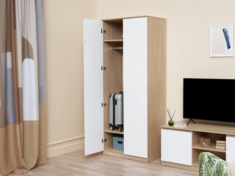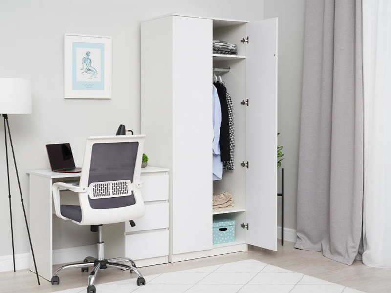 Челси Шкаф 2-х створчатый платяной— распашной шкаф с 2 дверьми, за которыми расположены секция со штангой и 2 полками. Материал шкафа — ЛДСП.