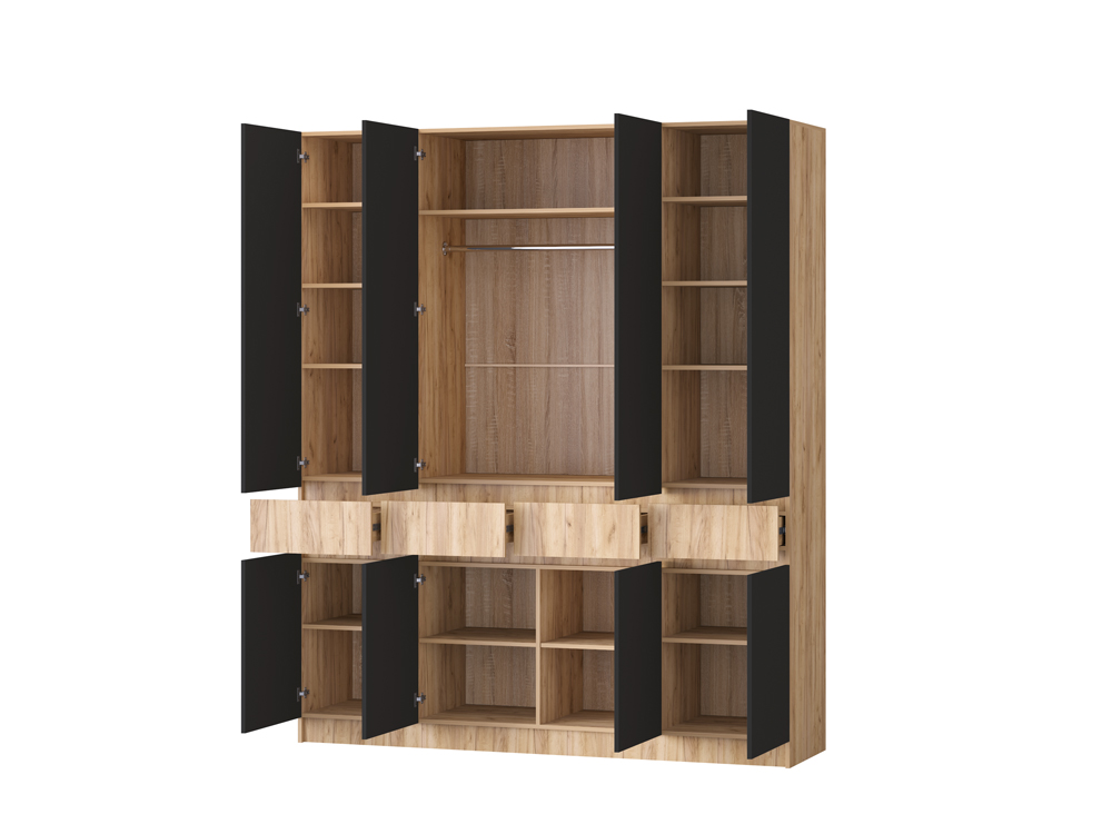 Шкаф 4-х створчатый к модульной прихожей "Артек" (Графит/Черный)