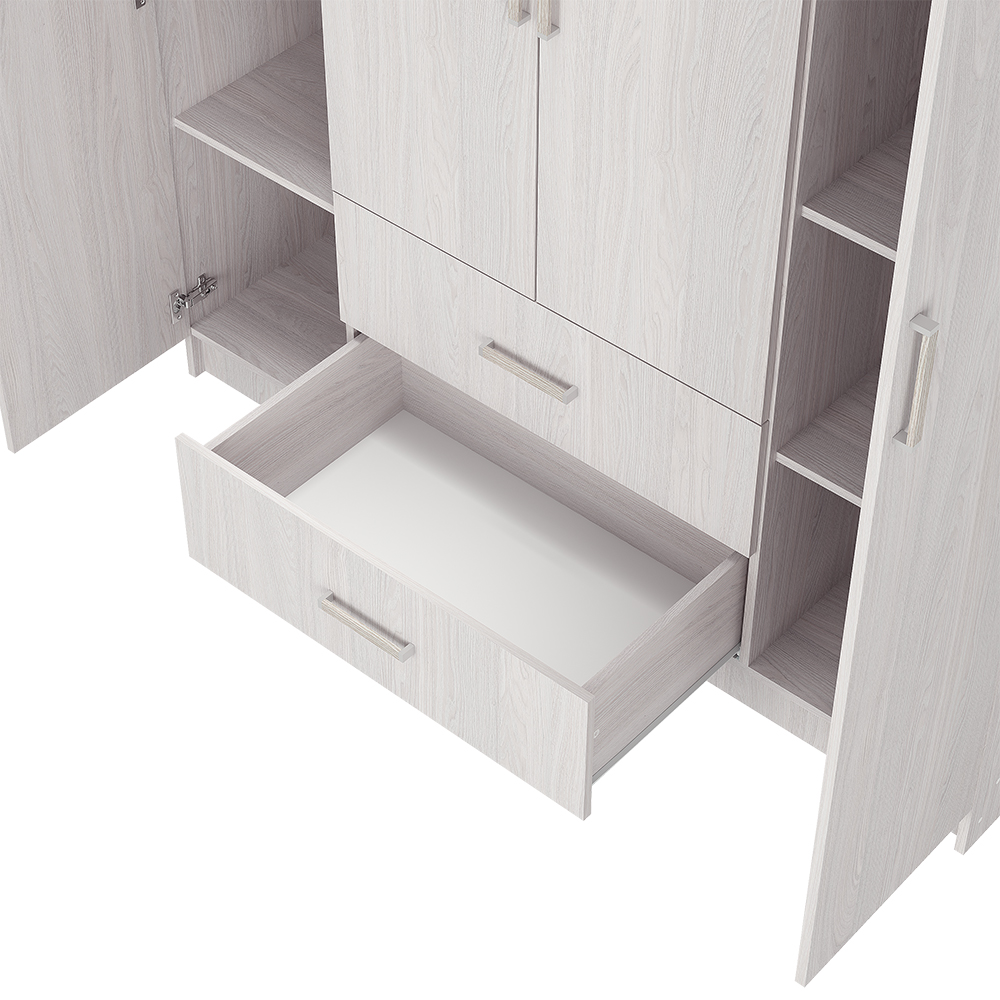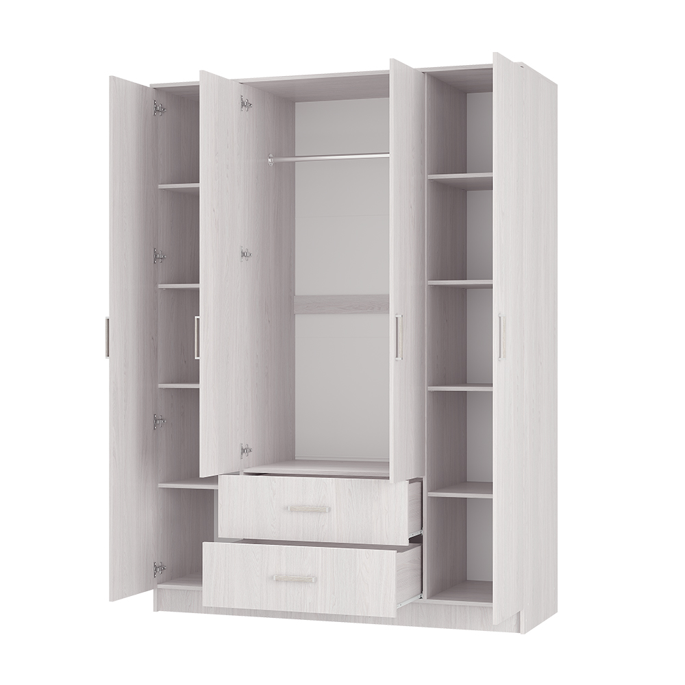 Четырехстворчатый шкаф "Титан" - это элегантное и функциональное решение в трендовом древесном декоре с текстурой дуба. Вместительные ящики. Максимум полезного пространства.