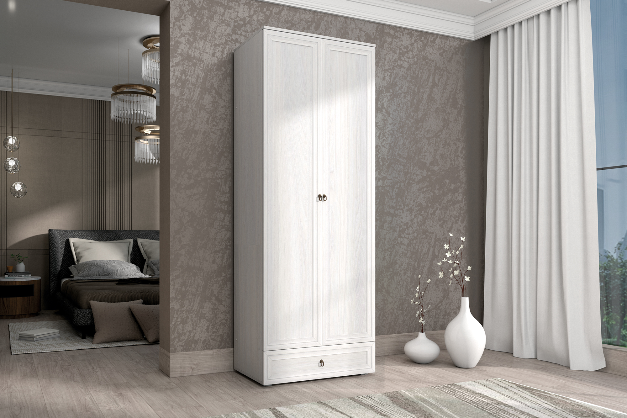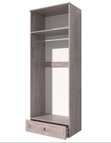 - Шкаф сочетает в себе выдвижной ящик на шариковых направляющих и платяное отделение.