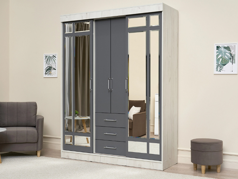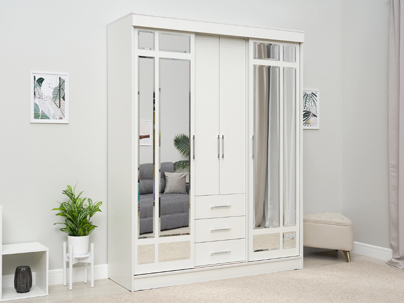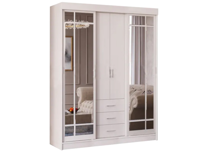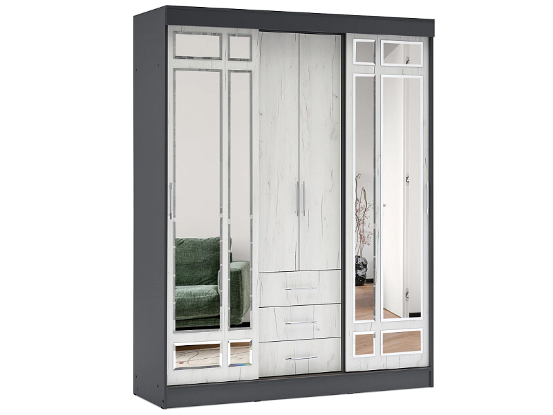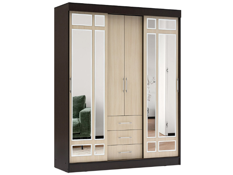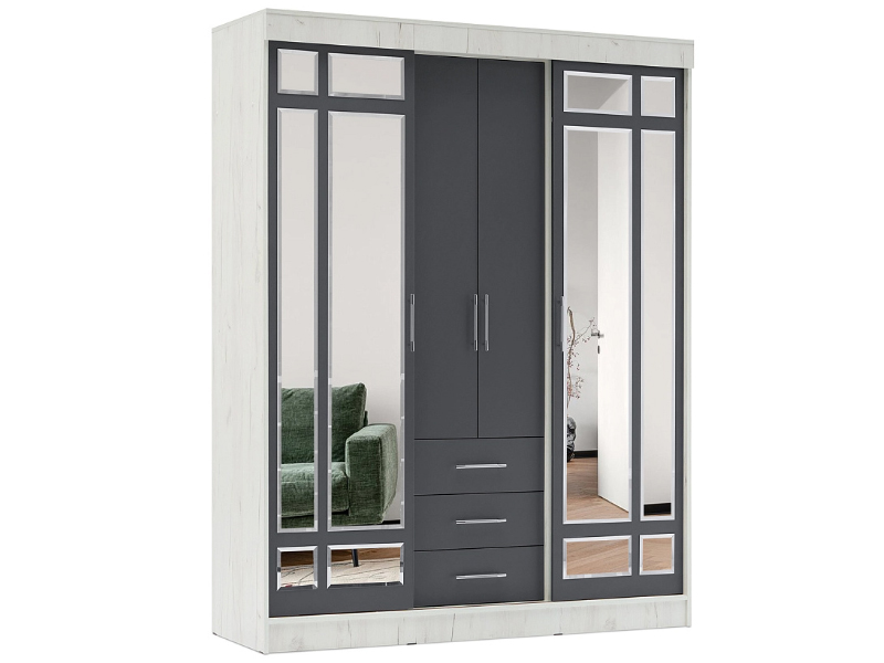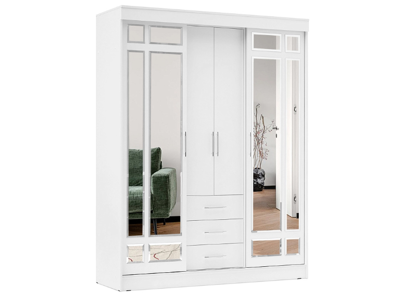 Лаконичный внешний вид и стильный дизайн удачно сочетаются с прак- Шкаф-купе тичностью и надежностью. Боковые зеркала оживляют шкаф-купе, сглаживают его объемные формы, придают ему некоторую хрупкость и невесомость.