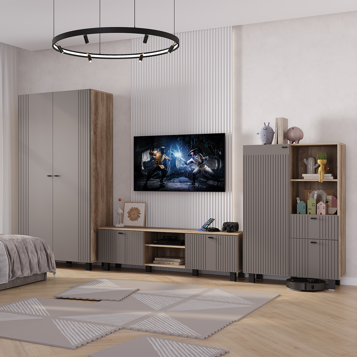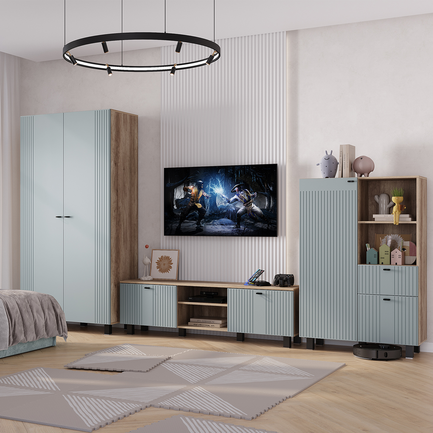 Шкаф "Олива" ШК-16 - стильный и компактный шкаф, который отлично подойдет как для гостиной, так и для кухни. Модель состоит из шести вместительных полок для хранения. На двух открытых полках можно разместить вазы, сувениры или красивую посуду. Удобный ящик с эргономичной ручкой подойдёт для мелочей. Шкаф "Олива" - лучший вариант для тех, кто стремится сохранять порядок - под него легко пройдёт робот-пылесос. Красивые фасады с необычным дизайном дополнят любой интерьер. Кромка - 0,45 мм. Пластиковые черные регулируемые опоры 50*50*100 мм. Ручки накладные - металл, 32 мм. Максимальная нагрузка на полку - 10 кг, на ящик - 5 кг. Гостиная "Олива" - это идеальное сочетание современного дизайна и функционала. Модель выглядит презентабельно и стильно. Матовые фасады из МДФ пастельного оттенка с оригинальной фрезеровкой будут отлично гармонировать как с насыщенными и нестандартными, так и с классическими решениями в интерьере.