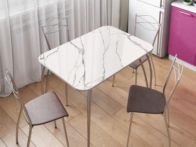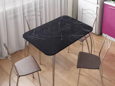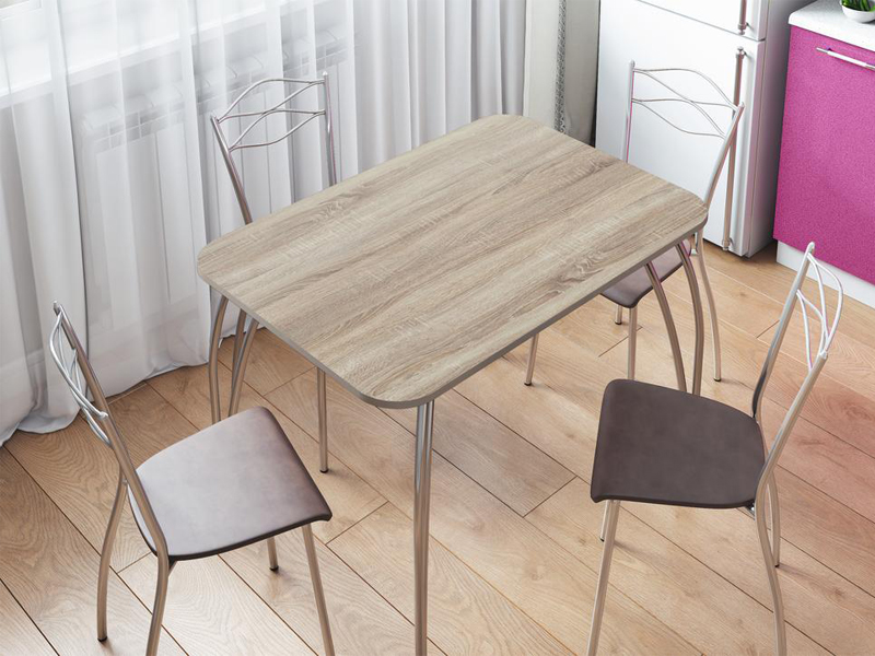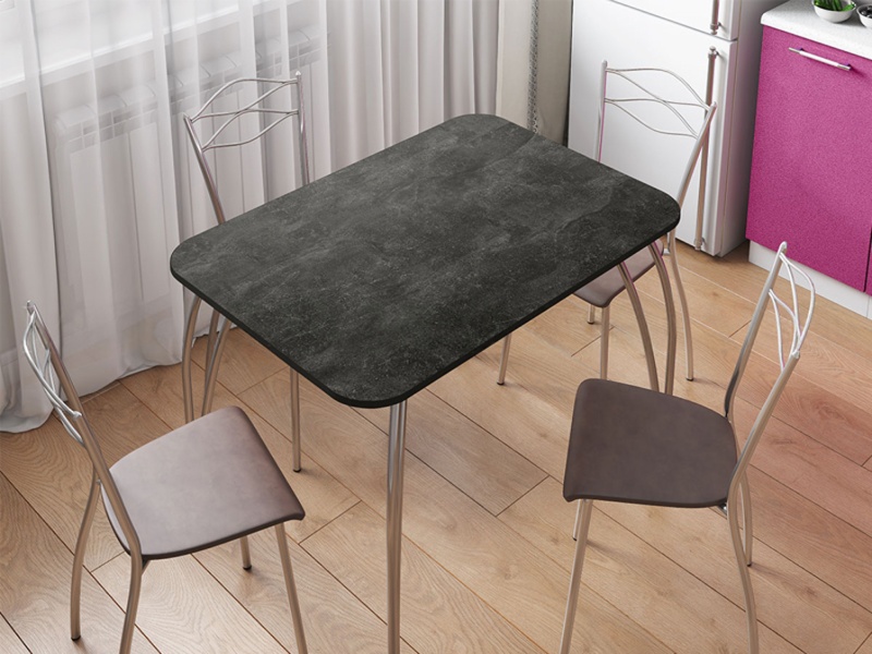 Современный стол с хромированными ножками - хорошо впишется как в большую, так и маленькую кухню. Разнообразный дизайн украсит любой интерьер помещения.