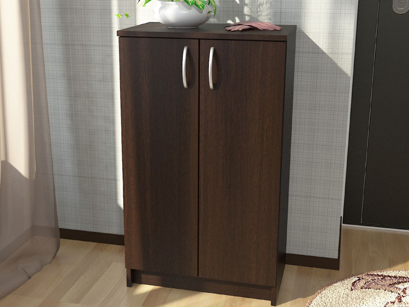 ЭВА Тумба для обуви ТМ-022 состоит из корпуса и фасада. Корпус и фасад изготавливаются из ЛДСП 16мм и закромлены кромкой ПВХ толщиной 0,4 мм. Задняя стенка выполнена из ДВП простого толщиной 3,2мм. Тумба для обуви имеет цокольную систему и состоит из 4х отсеков для обуви. Три полки наклонены вперёд под углом 8град.. В качестве опор используются подпятники черного цвета. Расстояние между полками 175мм.Тумба рассчитана под 8 пар не габаритной обуви. Ручка скоба пластиковая.