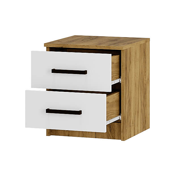 Небольшая прикроватная тумба «Евро» - то, что нужно для спальни. Два ящика, декорированных белыми панелями, станут отличным местом для хранения самых нужных вещей. Верхняя панель может использоваться как полка для дополнительных источников освещения или предметов, которые всегда должны быть под рукой.